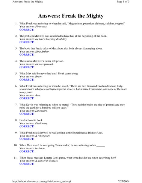 Download Freak The Mighty Test Answers Reader