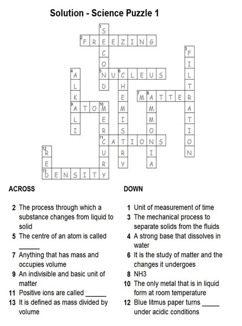 Read Science Crossword Puzzles With Answers For Class 7 Doc